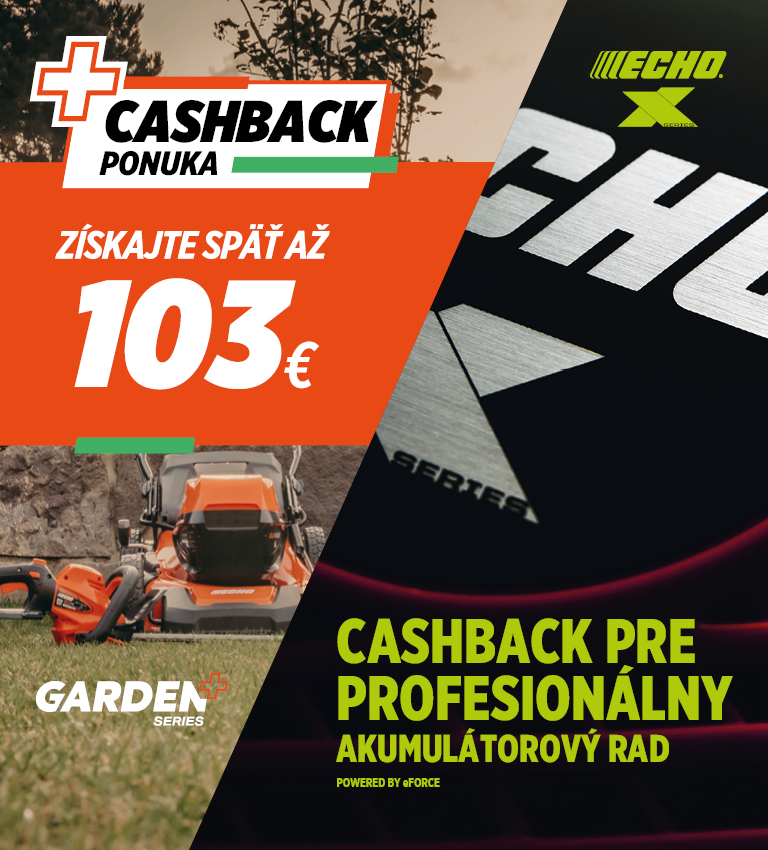 Spúšťame špeciálnu CASHBACK akciu na 40V a 56V aku program ECHO, vďaka ktorej ušetríte tisíce eur – a to okamžite pri nákupe, bez čakania a bez registrácie.